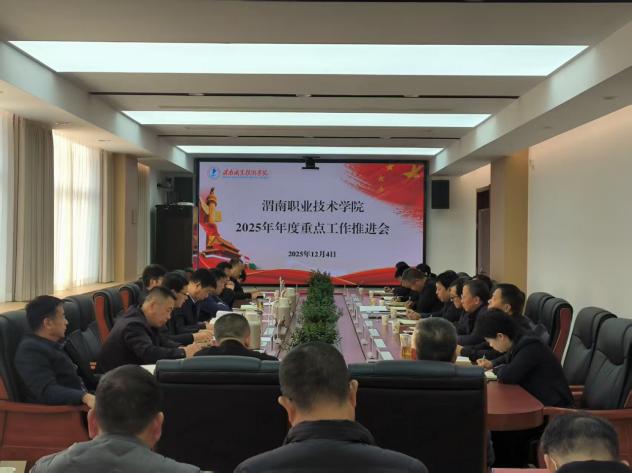 12月4日下午,我校2025年年度重点工作推进会在行政楼五楼会议室顺利召开。学校领导班子成员,各二级学院、职能部门主要负责人参会。校长靳华锋主持会议并作工作部署,为学校圆满完成年度收官任务、谋划长远发展路径明确方向指引、压实工作责任、凝聚奋进合力。